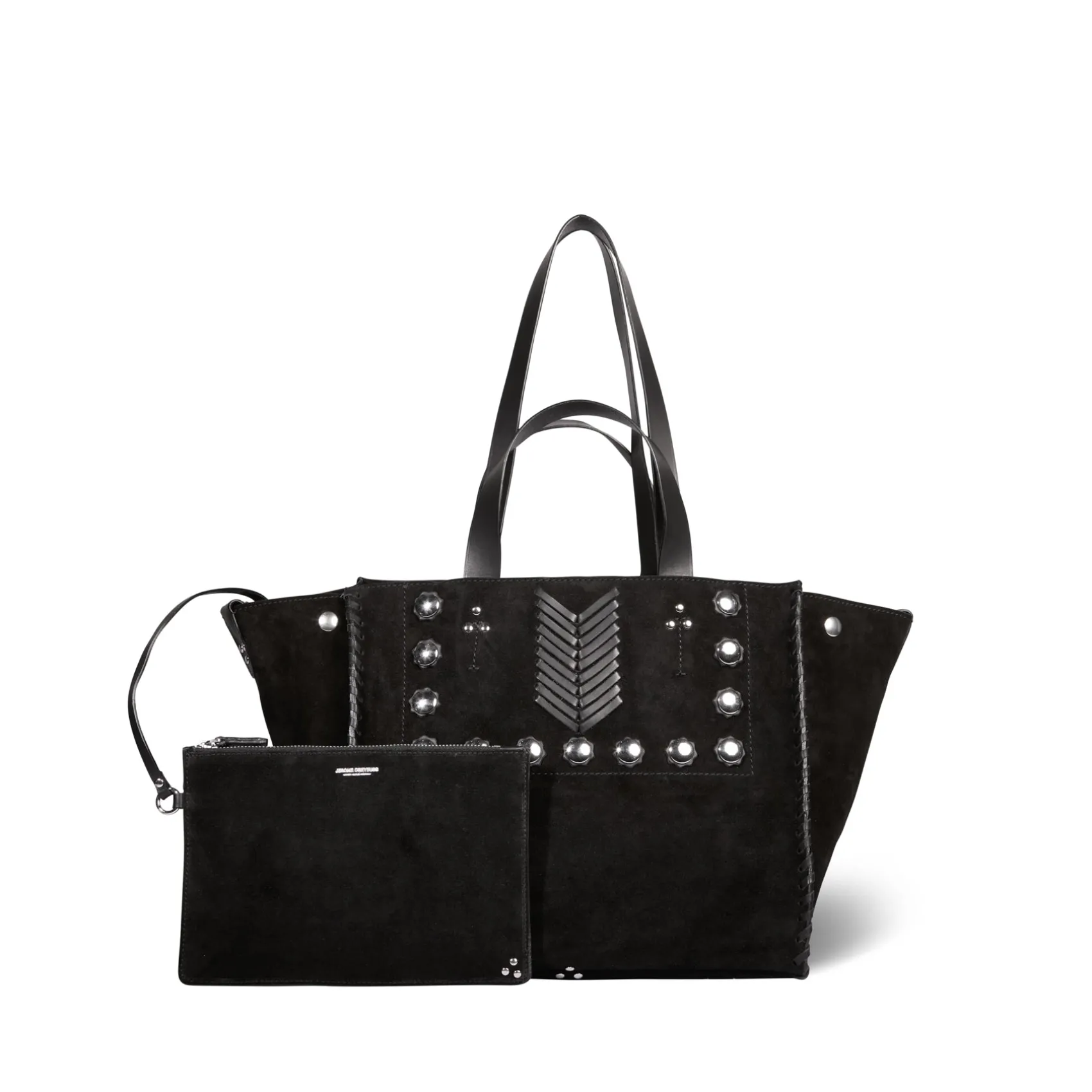 Closing by leather tabs with pressure. Four handles, of two lengths, in leather on the top of the bag. Organized bag with a large compartment and a leather pouch hanging by a link inside.