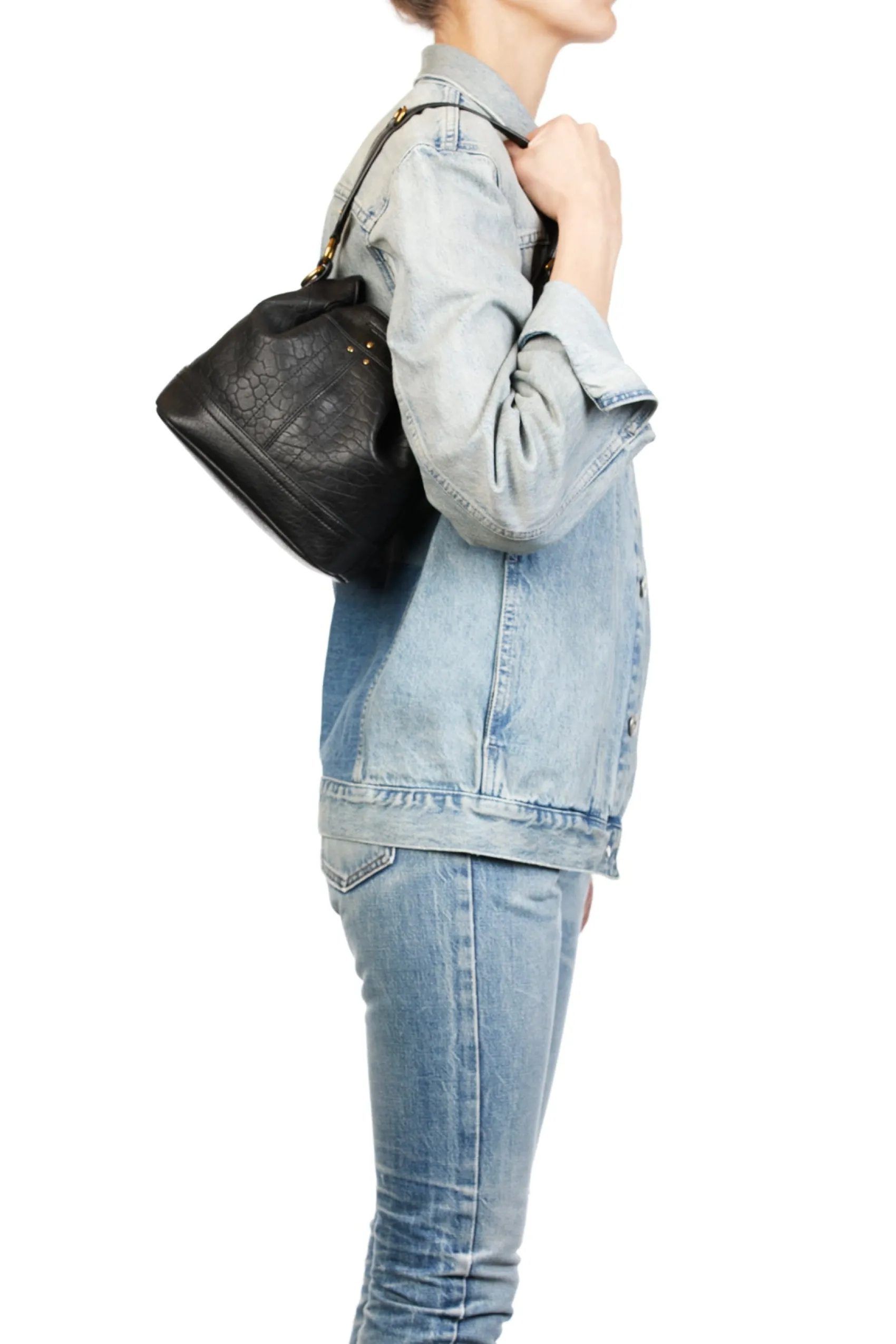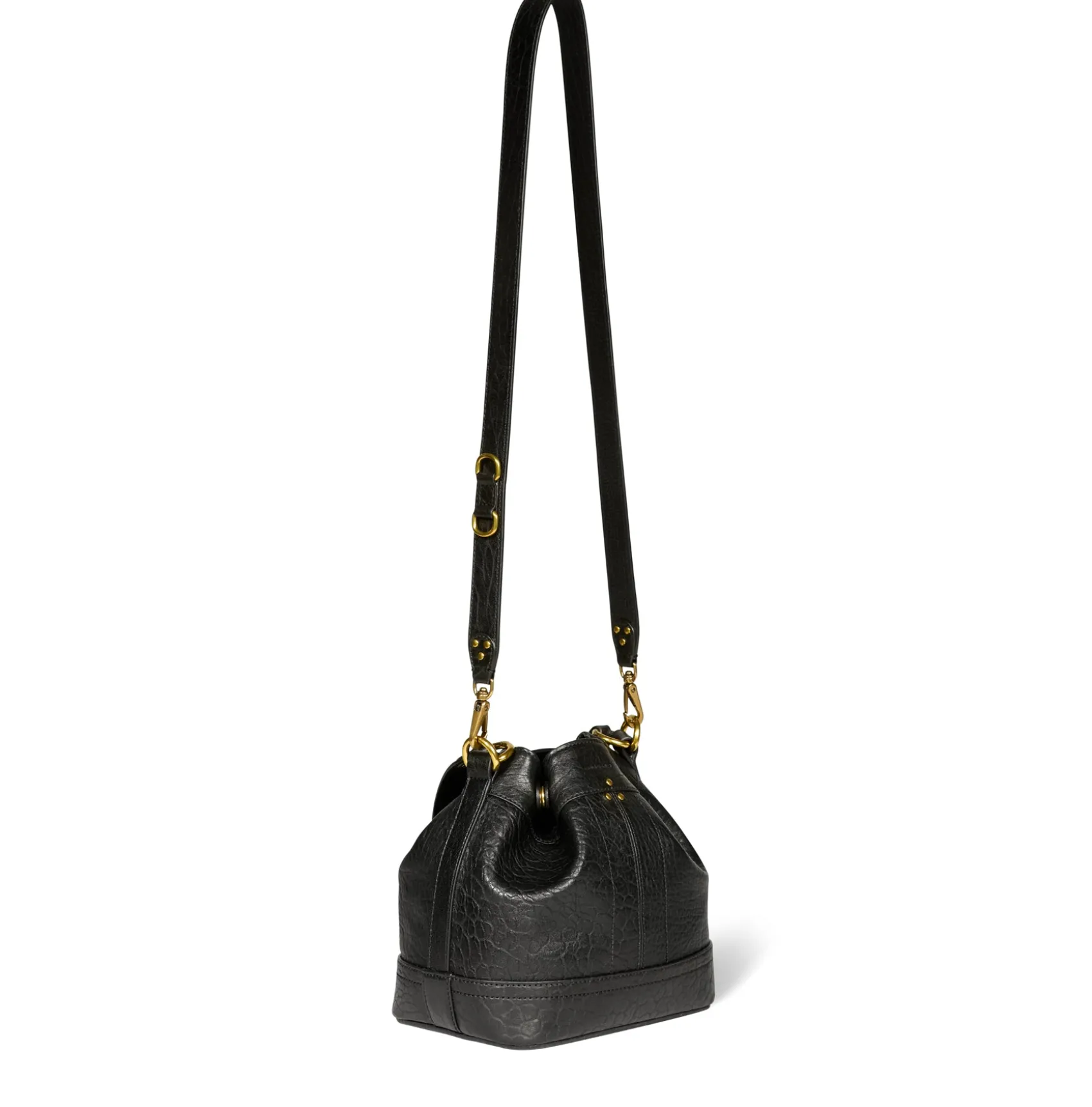 Adjustable snap closure. Worn on the shoulder or crossed. Detachable leather shoulder strap. Inside pocket with a keychain link inside the bag.