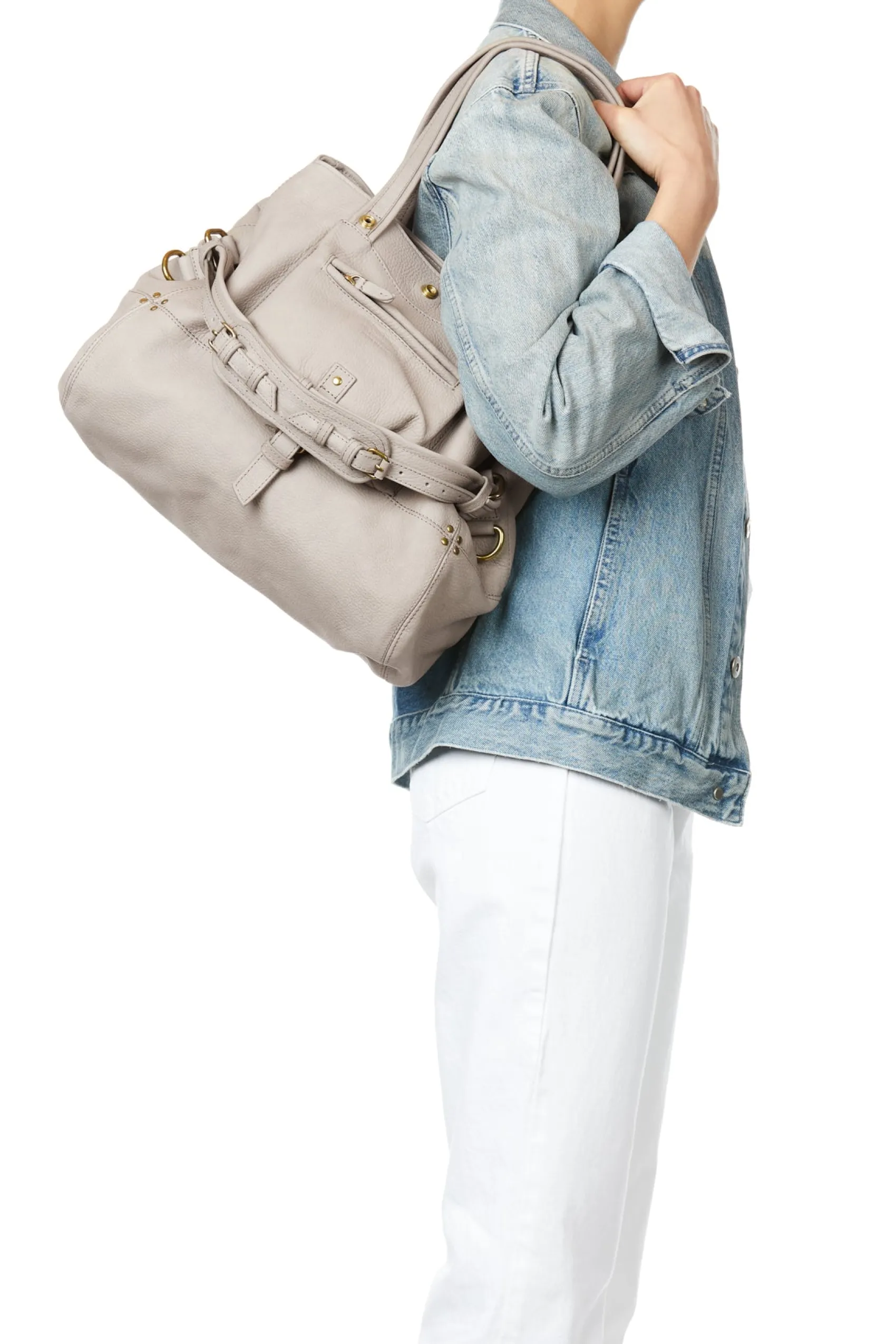 Two leather handles measuring 25cm, maximum lenght 50 cm. Non-adjustable leather strap measuring 48 cm. One exterior zipped pocket on the front. One interior pocket. One key hook inside.