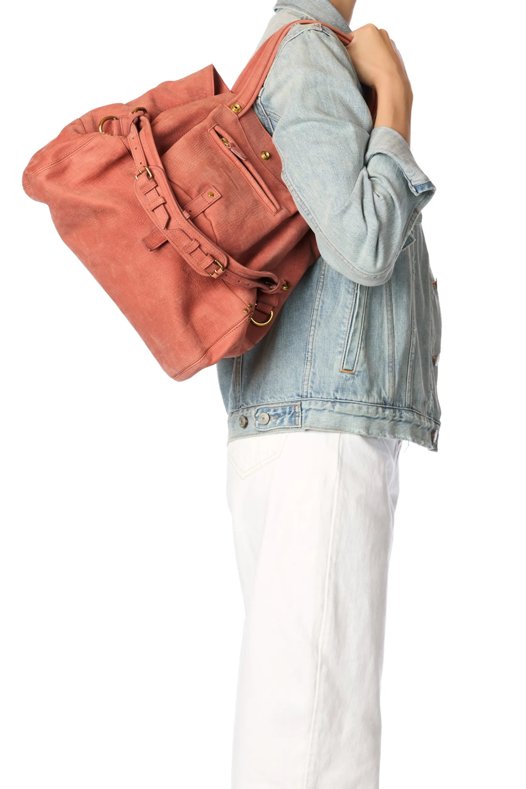 Two leather handles measuring 25cm, maximum lenght 50 cm. Non-adjustable leather strap measuring 48 cm. One exterior zip…