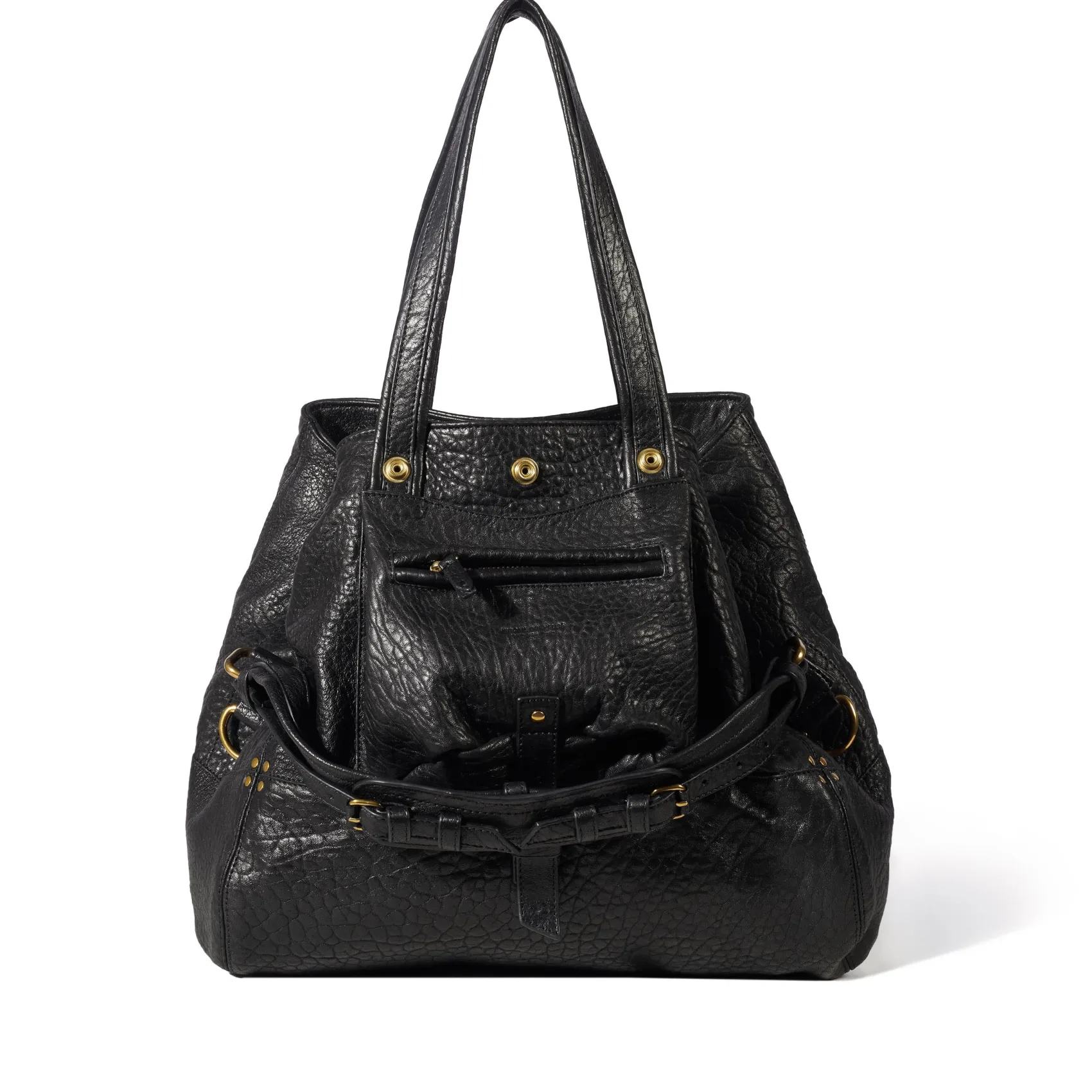 Two leather handles measuring 25cm, maximum lenght 50 cm. Non-adjustable leather strap measuring 48 cm. One exterior zipped pocket on the front. One interior pocket. One key hook inside.