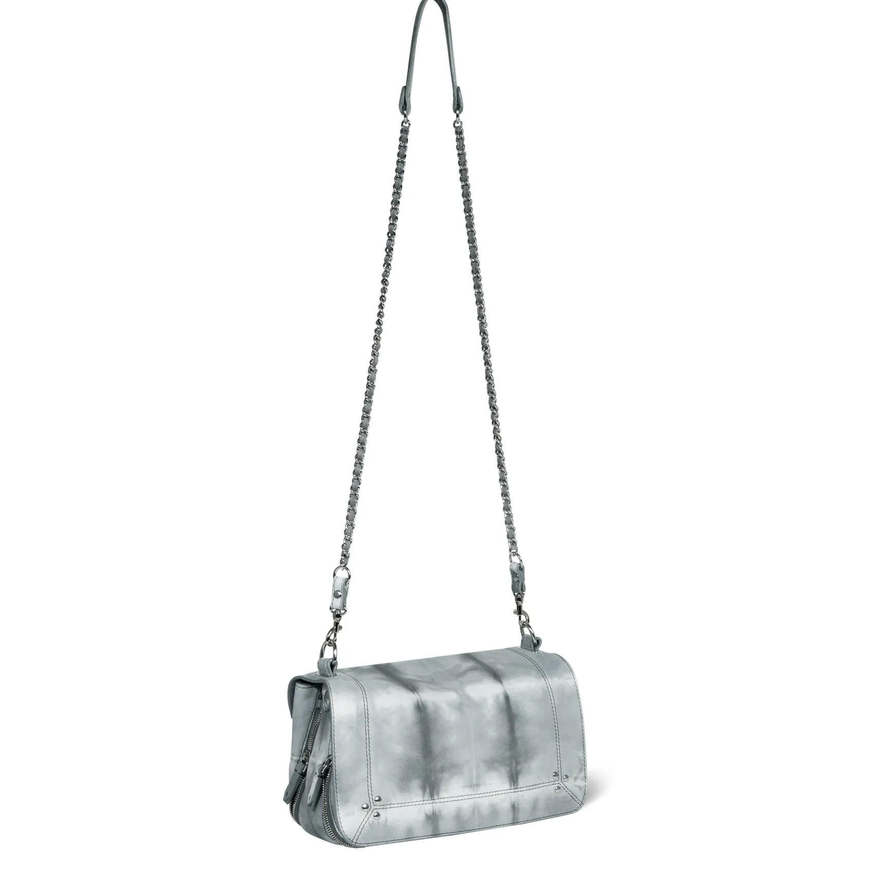 Leather and chain shoulder strap adjustable and two lengths : 65 cm or 105 cm. Leather flap with a double magnetic fastening. Three pouch compartments. Two zip gussets to adjust size. One detachable mirror and key hook inside.Can be associated with all our shoulder straps and handles Handbag 100% Goatskin / Lining 100% CottonDimensions : 25 x 15 x 10 cm