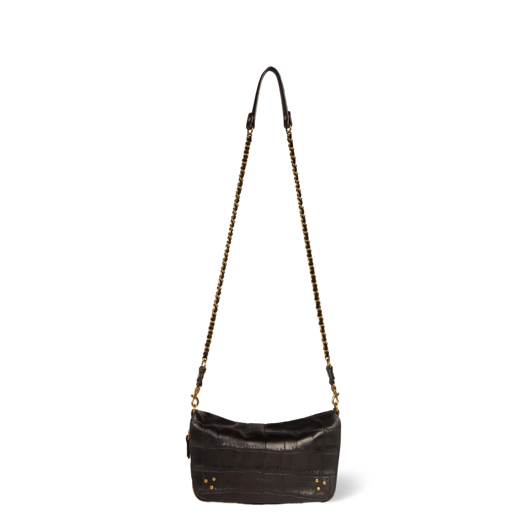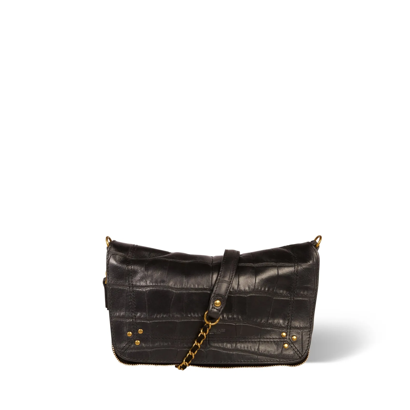 Removable shoulder strap braided leather chain measuring 105 cm. Closing by a flap in magnetized leather. Bag organized in a large compartment. One detachable mirror and key hook inside.