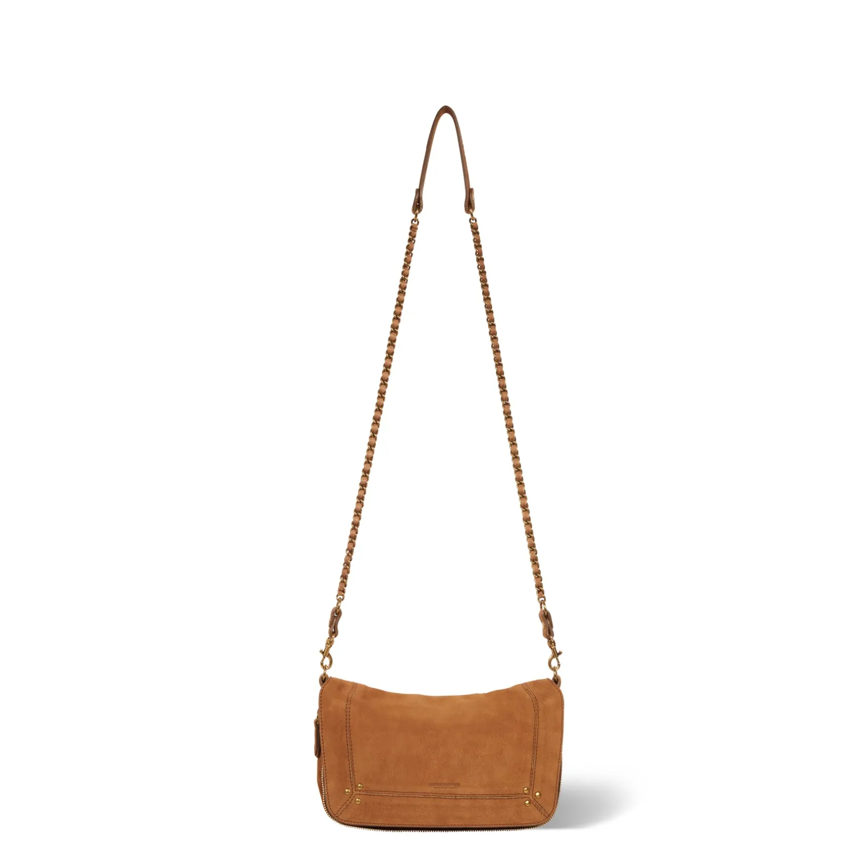 Removable shoulder strap braided leather chain measuring 105 cm. Closing by a flap in magnetized leather. Bag organized in a large compartment. One detachable mirror and key hook inside.