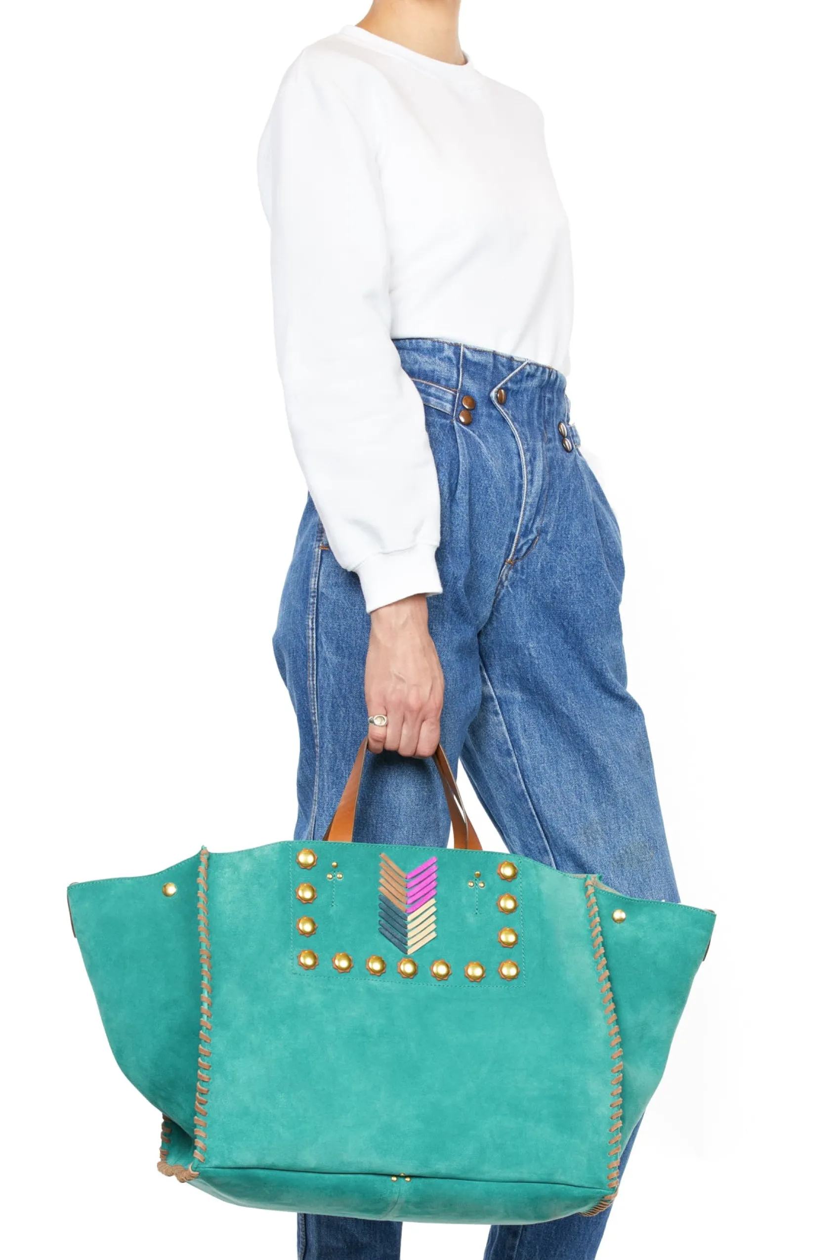 Closing by leather tabs with pressure. Four handles, of two lengths, in leather on the top of the bag. Organized bag with a large compartment and a leather pouch hanging by a link inside.