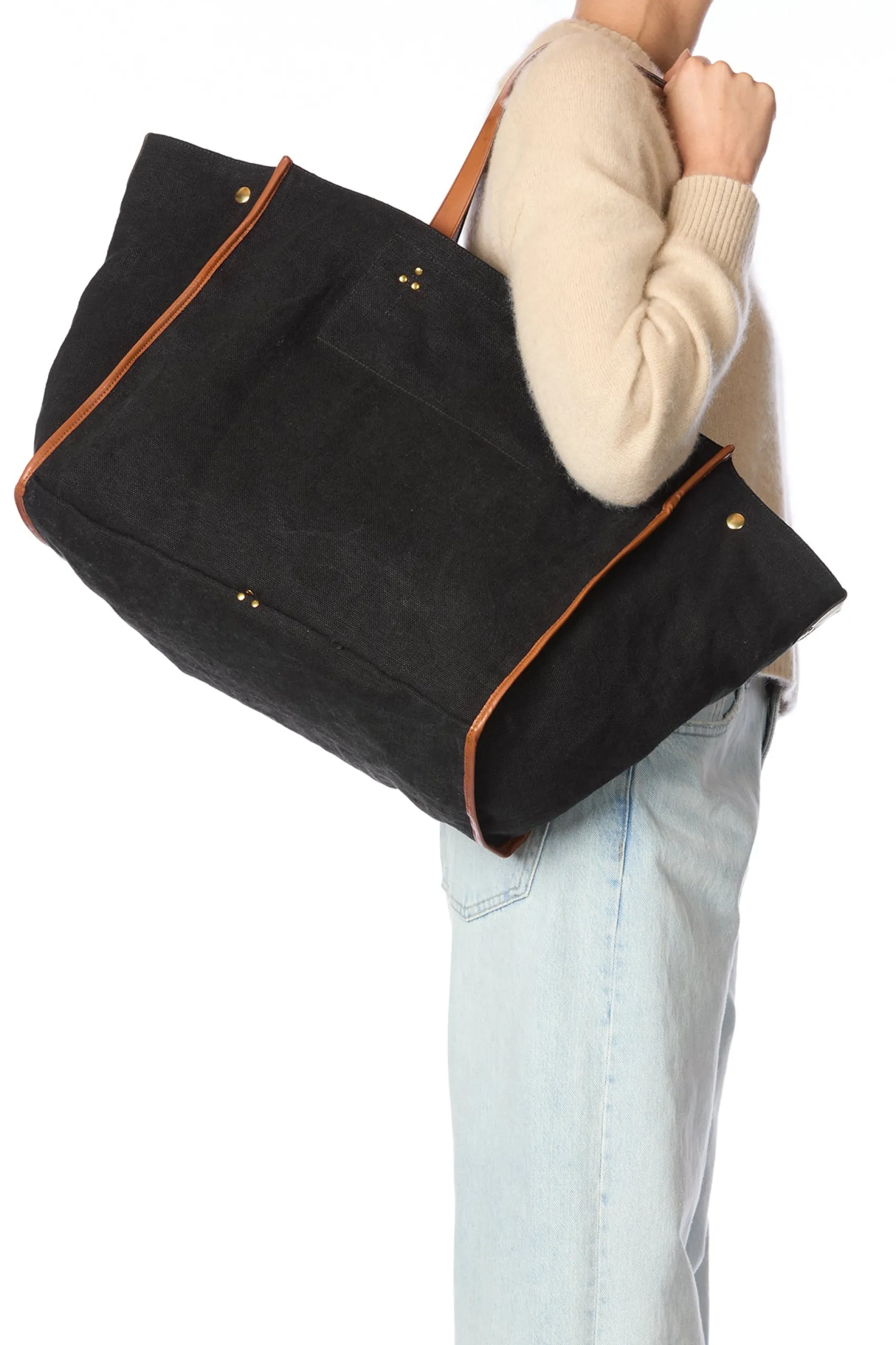 Closing by leather tabs with pressure. Four handles, of two lengths, in leather on the top of the bag. Organized bag with a large compartment and a leather pouch hanging by a link inside.
