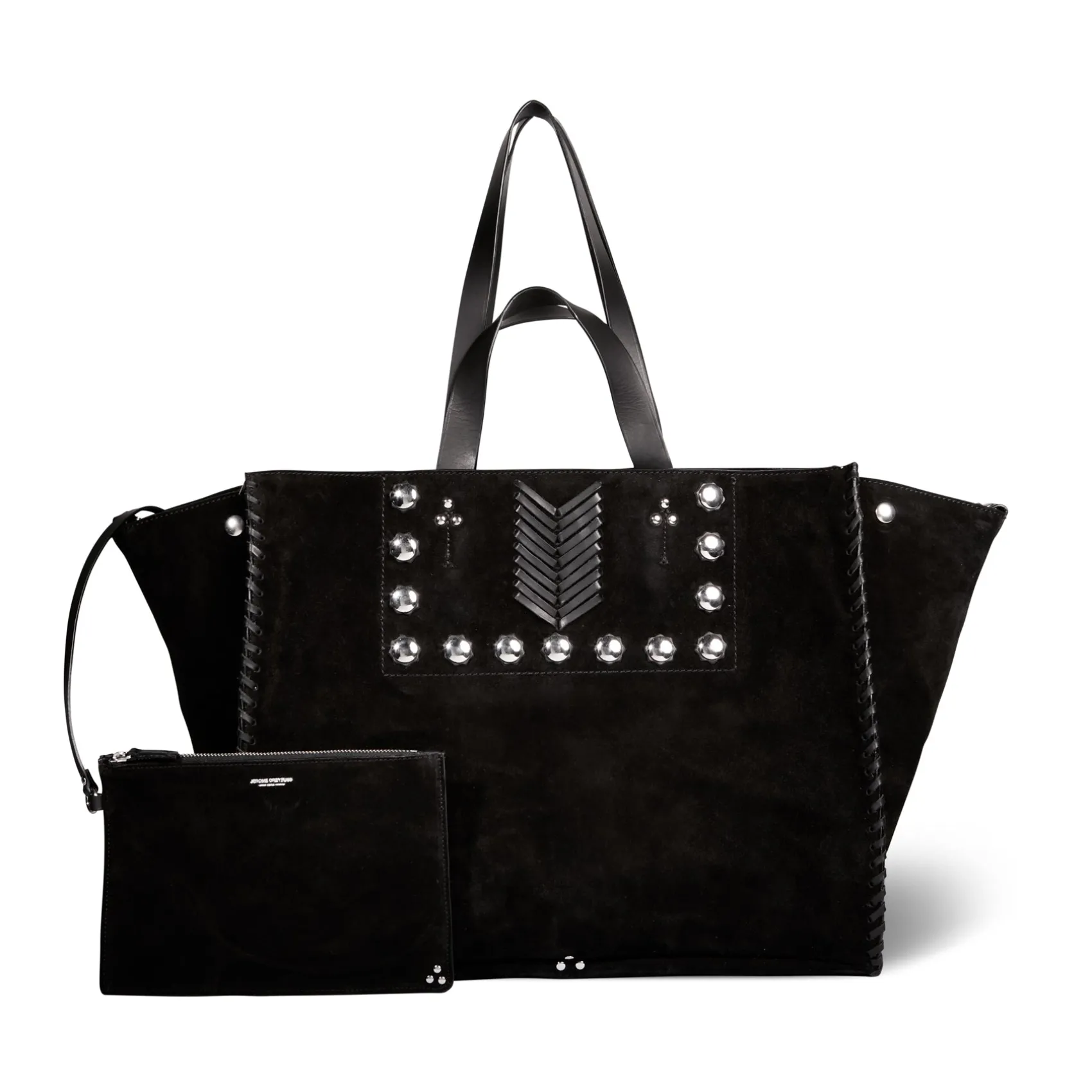 Closing by leather tabs with pressure. Four handles, of two lengths, in leather on the top of the bag. Organized bag with a large compartment and a leather pouch hanging by a link inside.