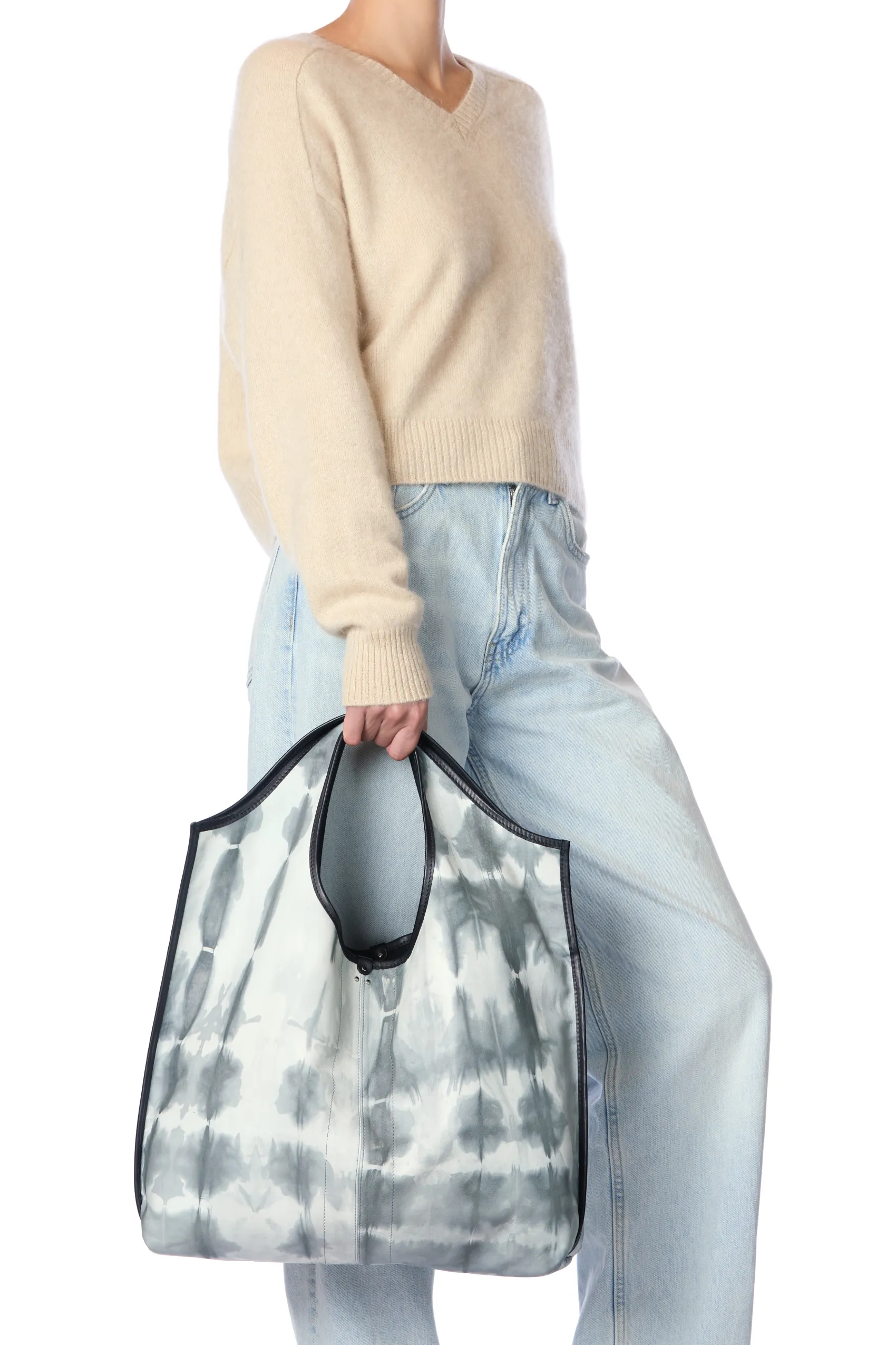 Soft shopping bag with round handles, worn on the shoulder like a tote bag.Cotton lining for lamé versions, unlined for textiles