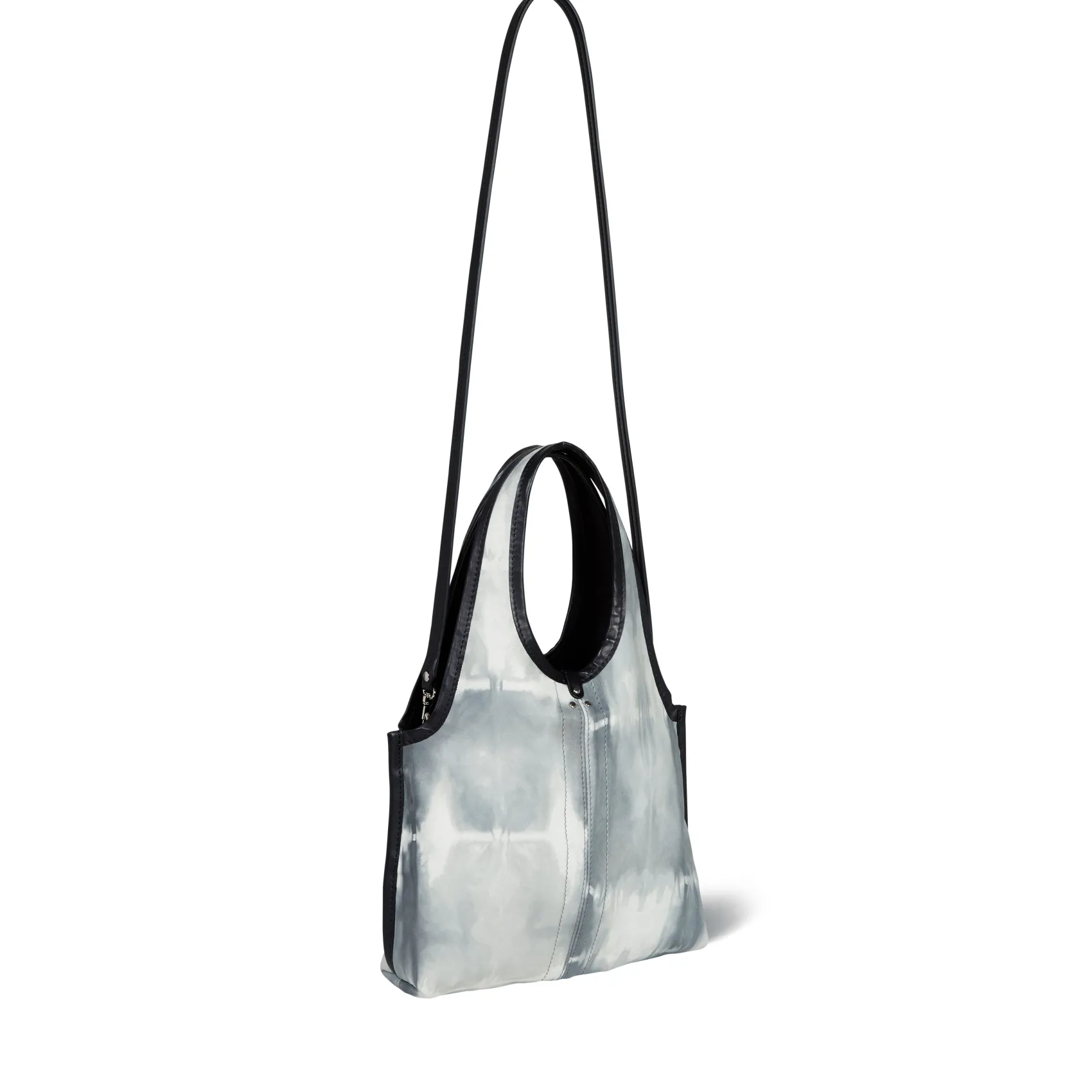 Soft tote bag with round handles, worn over the shoulder, by hand, or crossbody with its removable shoulder strap.Remova…