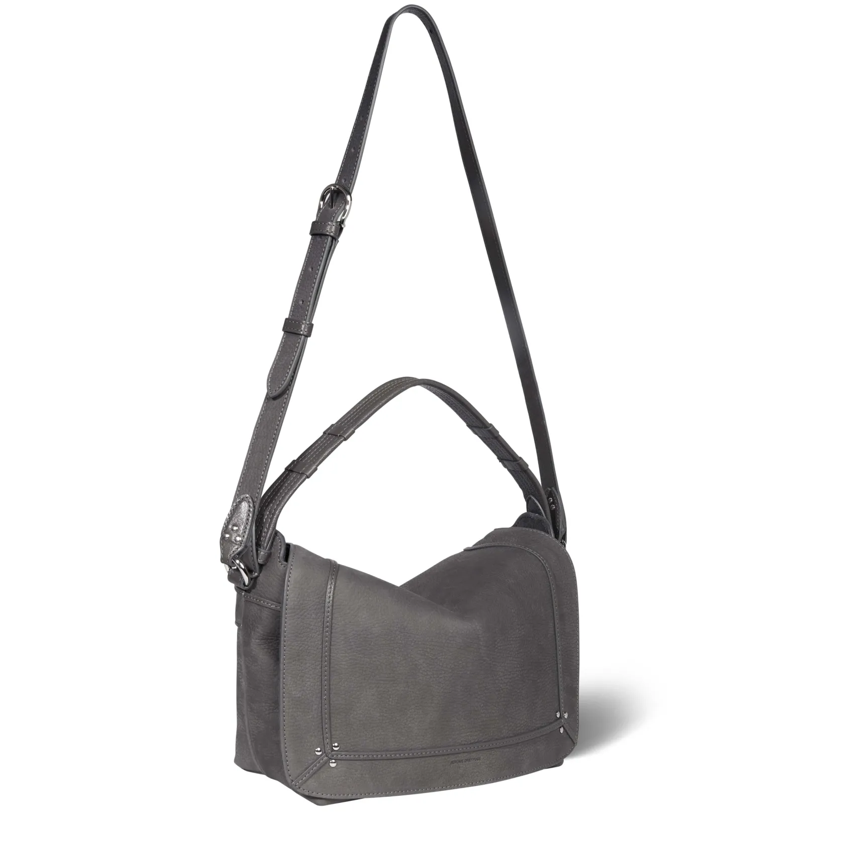 A quilted leather handle and a long adjustable and removable shoulder strap from 66 cm to 97 cm (size S) and from 84 cm to 115 cm (sizes M and L). Closure with a magnetic leather flap. A zippered exterior pocket at the back of the bag. Interior slip pocket without zipper. A keychain link inside the bag. A clean design with numerous meticulous and discreet craftsmanship details and deconstructed lines. The precise work on the four stitches of the handles highlights the quality and care given to every detail. The shoulder strap and handle attachments feature a relief reminiscent of horse harnesses, adding a touch of elegance and tradition. Dimensions: S: 21 x 19 x 9 cm M: 29 x 23 x 13 cm L: 36 x 28 x 13 cm Made in ItalyHandbag 100% Goatskin / Lining 100% CottonDimensions : 29 x 23 x 13 cm / Shoulder strap: 68cm to 85cm longCan be associated with all our shoulder straps