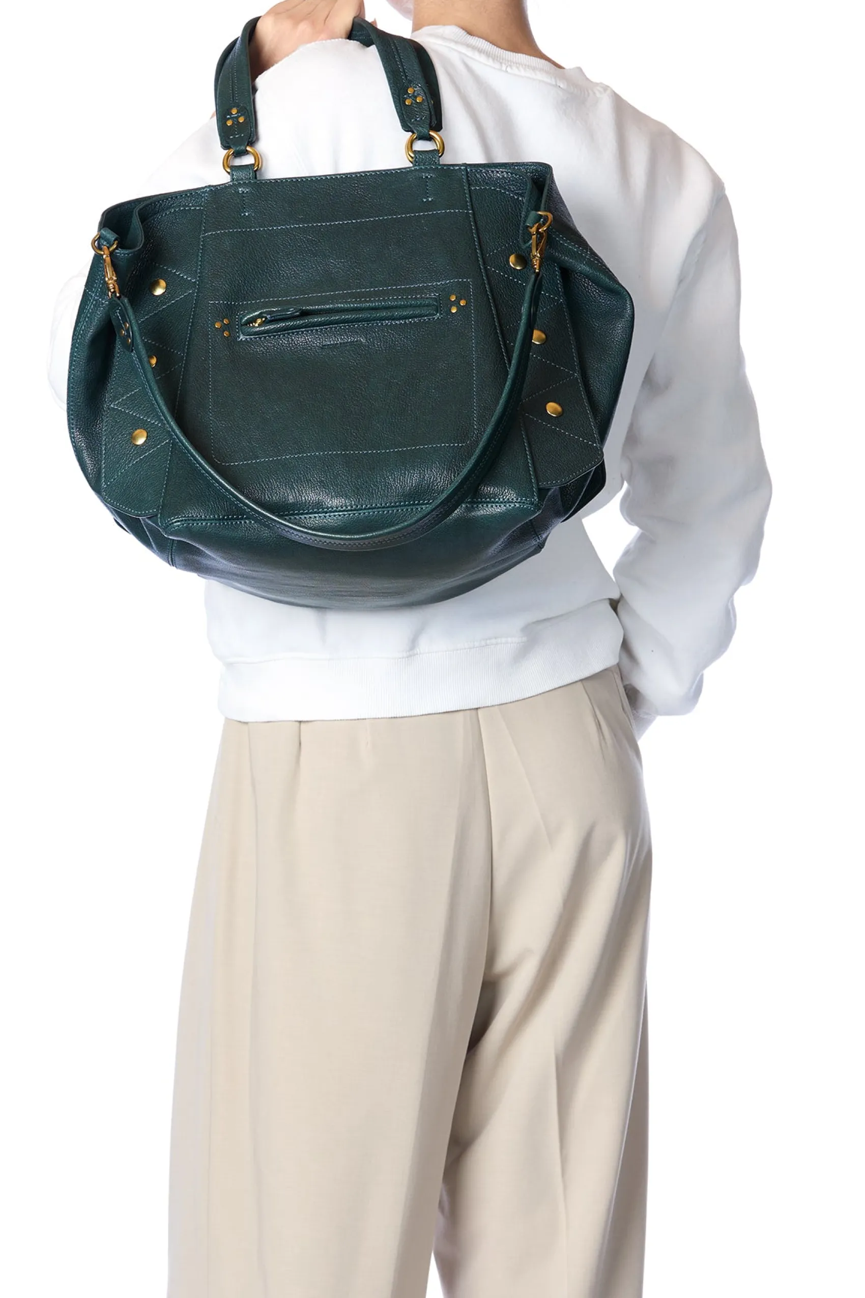 Zip closure. Two leather handles and a removable leather shoulder strap. One external zipped pocket. One inside pocket. A key link inside the bag.